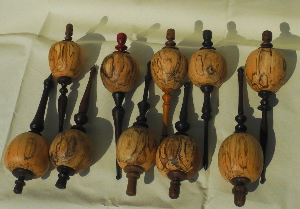 Hölzer: gestockte Hainbuche, dunkle Köpfe Nußbaum