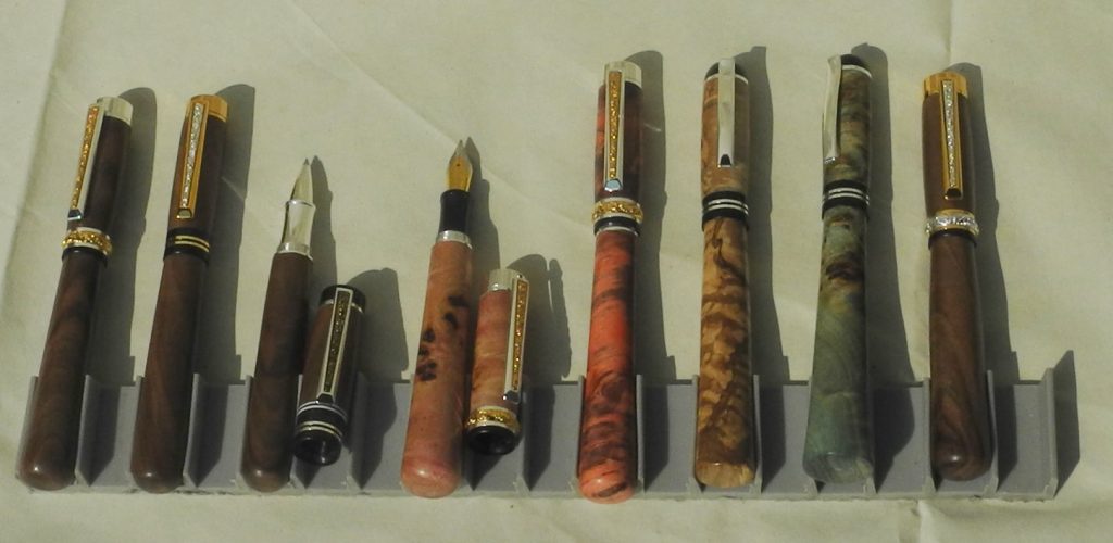 Holzarten: stabilisierte und teilweise gefärbte Maserhölzer
